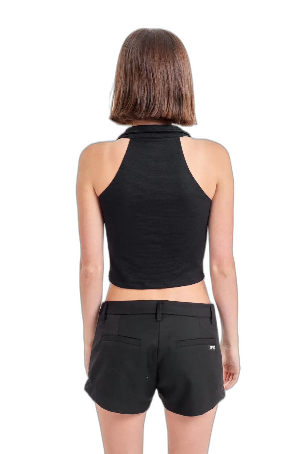 Mini short sastrero de tiro bajo con acceso central de ojal y botón. Cintura con presillas, vistas de bolsillos tipo sastre y mini etiqueta con logo de la marca en trasero. Una opción elegante que queda increíble con blazers o camisas oversize o casual con remeras estampadas.