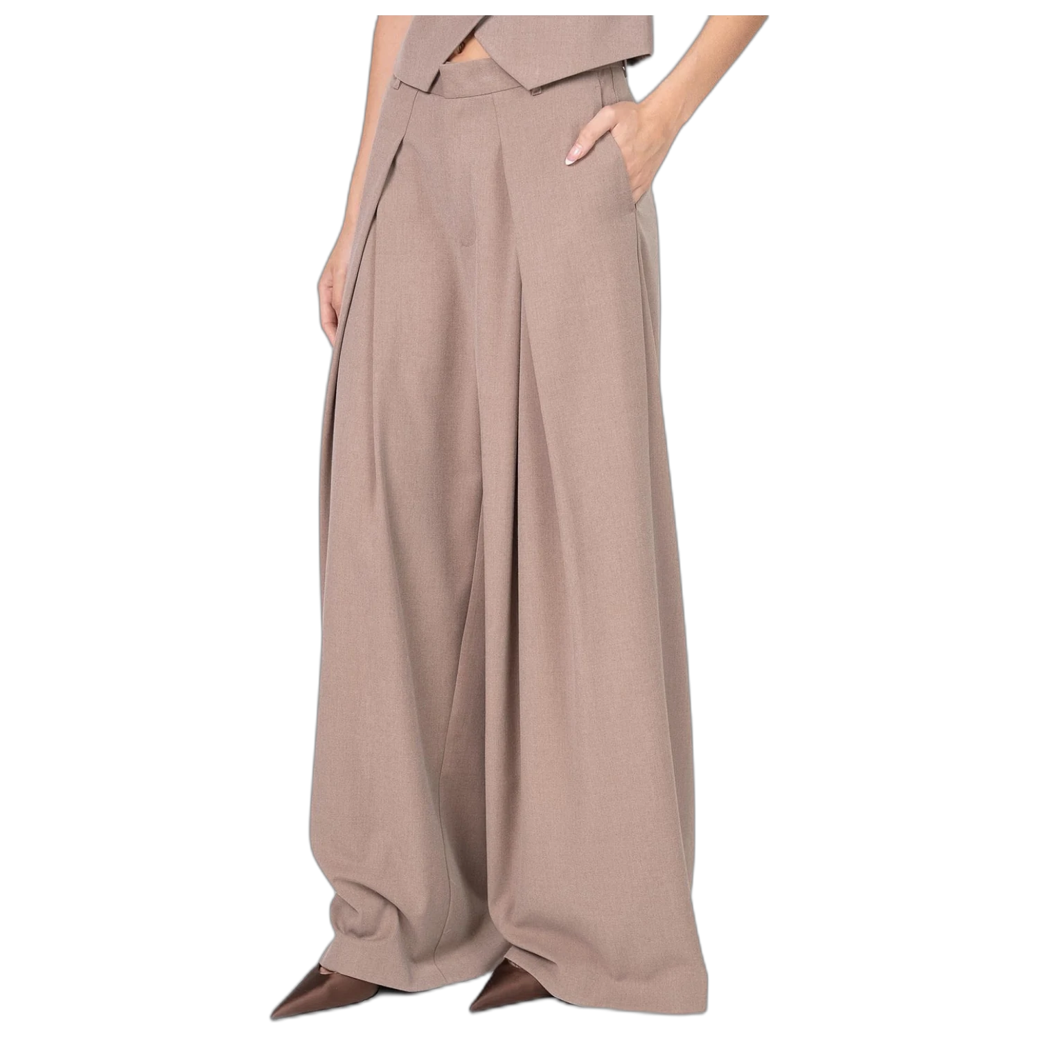 El pantalón Melocoton Angelina es un modelo sastrero de tiro alto con silueta tipo babucha, confeccionado en lino liviano que brinda comodidad y caída natural. Incluye cinturón incorporado y bolsillos funcionales, ideal para armar looks urbanos relajados con un toque elegante.