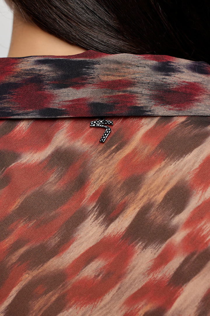 Camisa confeccionada en gasa con un estampado exclusivo de la colección, aportando transparencia. Es un modelo muy sentador ya que su confección hace que la tela caiga sobre el cuerpo muy suavemente. Lleva botones personalizados Tucci. Un must-have de esta temporada.