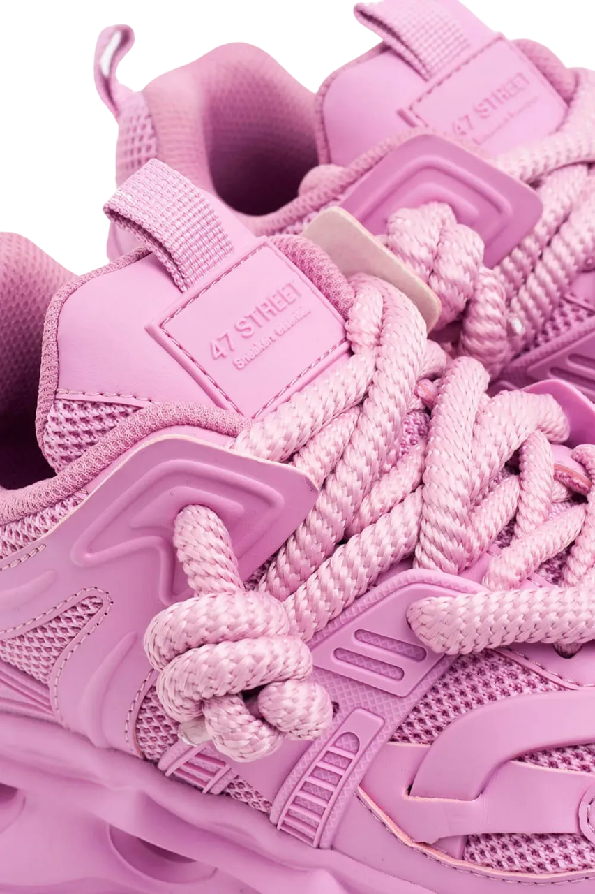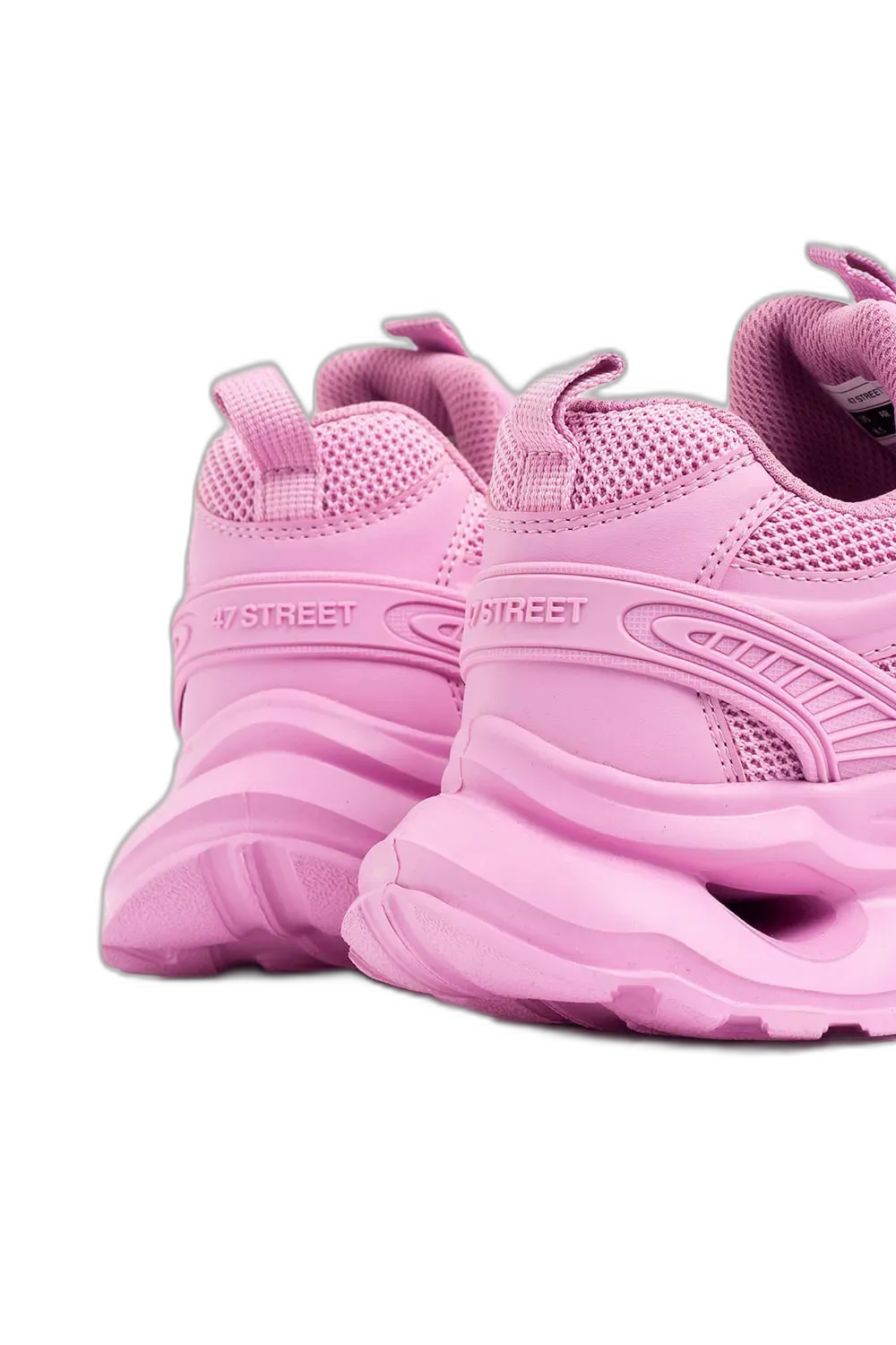 Zapatillas deportivas full color con base ancha y capellada con recortes superpuestos. Cordones anchos al tono y lengüeta con logo en relieve. Perfectas para dar un toque a conjuntos monocromos o elevar un outfit con prendas básicas.
